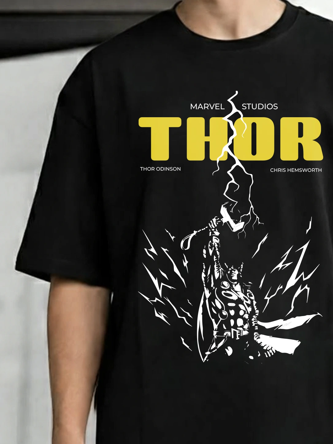 Unleash the power of the God of Thunder with this bold Thor graphic T-shirt. Featuring a striking lightning design and iconic superhero vibes, this tee blends Marvel energy with modern streetwear style.