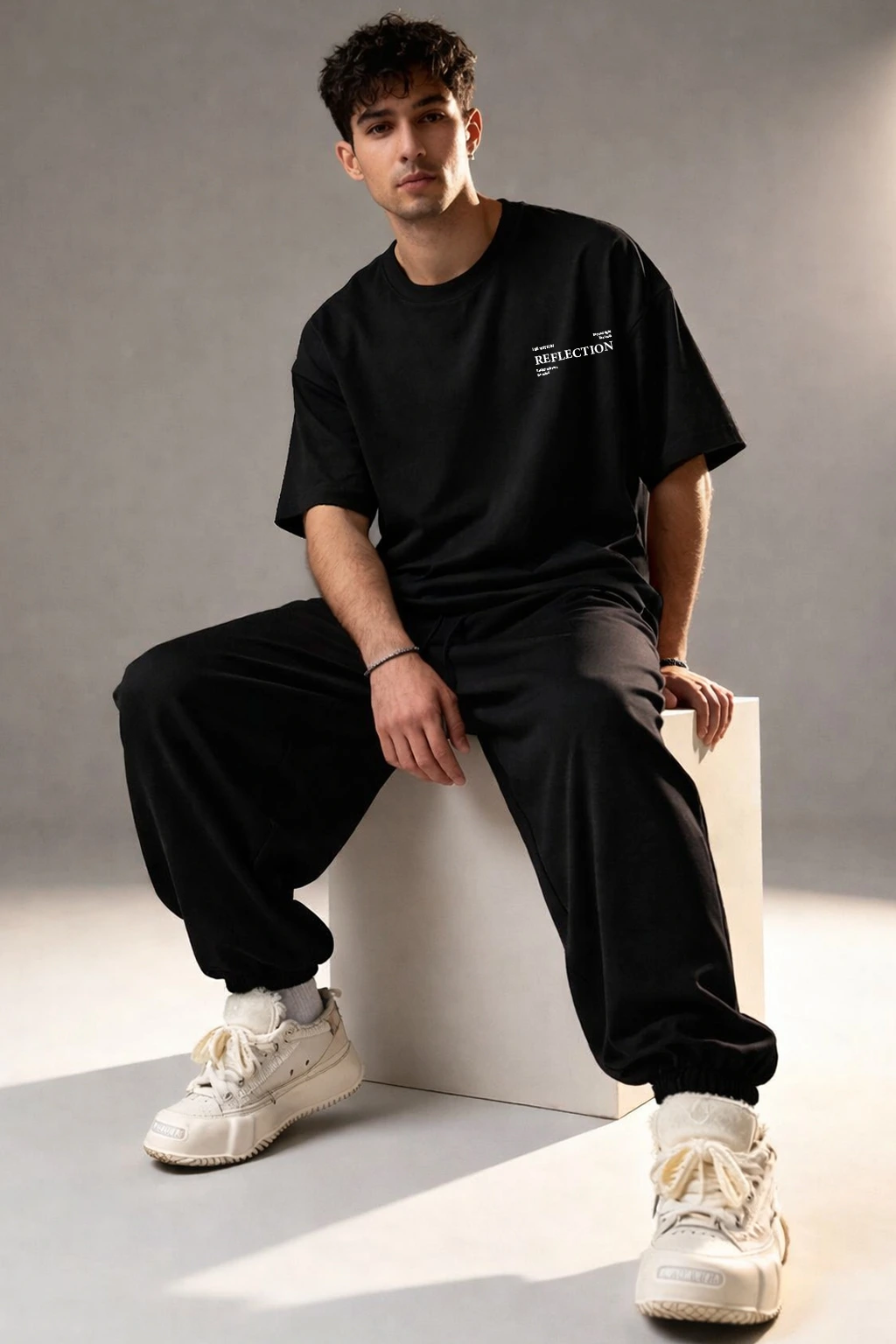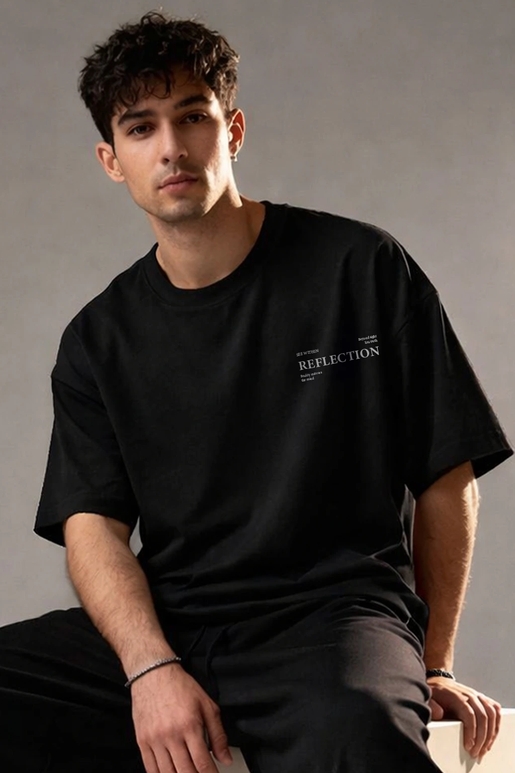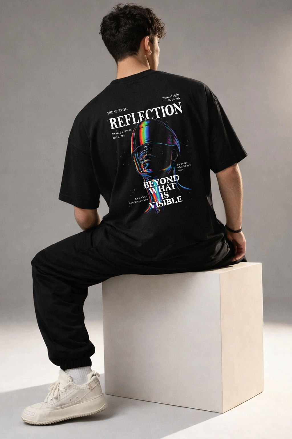 A bold oversized graphic T-shirt featuring a vibrant reflective portrait and motivational typography about self-awareness and inner vision.