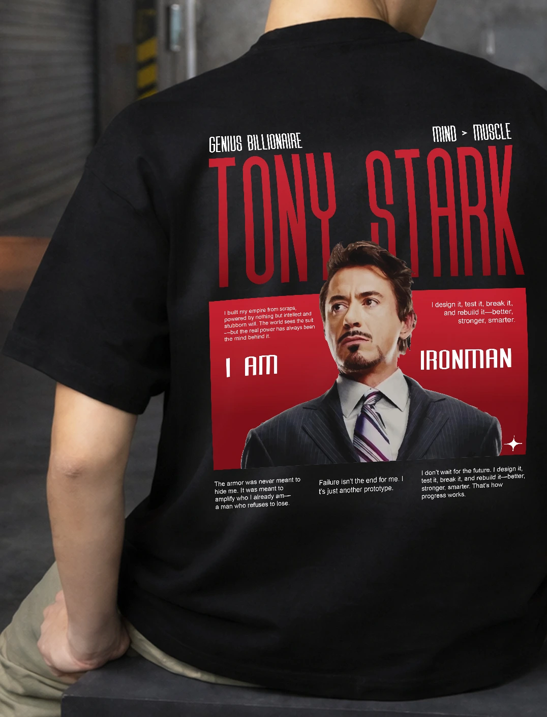 Channel your inner genius with this bold Tony Stark–inspired oversized tee, designed for fans who think beyond limits.